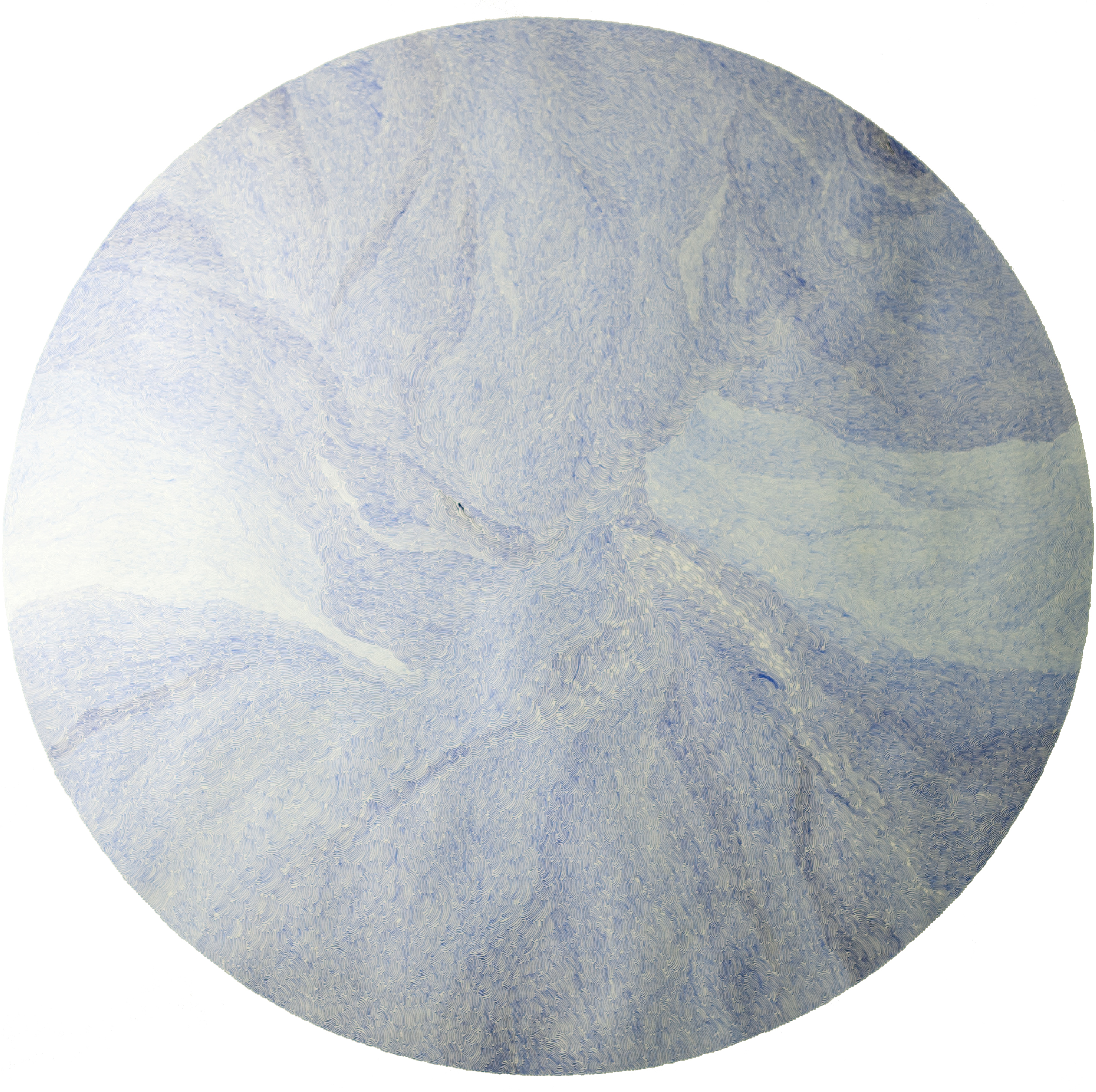 Graphic music for a cappella octet on Joshua Yang's Still Life in Blue Minor No. 1 and 2, archival ink on paper 101.6 x 101.6 cm.